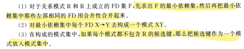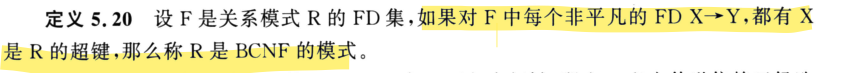 分解为BCNF:既然不是BCNF,则必然存在x→y,x不包含超键,那么就将它分解为xy和r_i-y两个模式,但不一定能保持FD