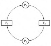 当出现类似这种情况的时候,就会发生死锁。如果用资源分配图描述: