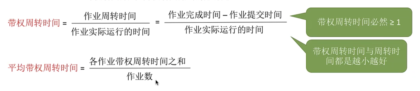- 批处理系统:平均周转时间短(一般用带权周转时间来衡量,系统吞吐量高,利用率高。