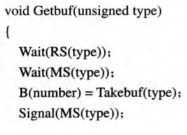 与普通队列一致,但是由于缓冲池是临界资源,因此Getbuf和Putbuf需要是进程同步且互斥的。用两个信号量来处理,RS代表缓冲区中时候有资源,MS则用于互斥。