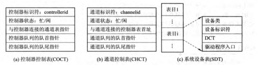 控制器控制表COCT、通道控制表CHCT和系统设备表SDT(记录了所有设备情况,包含DCT)