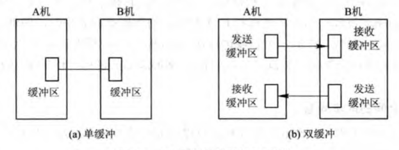 而对于两台机器之间互相通信的时候,如果只配置单缓冲,则任意时刻都只能单方向的数据传输,因为传输的时候同时占据两边的缓冲区。因此要用双缓冲区。