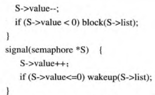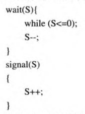 整数信号量:总共两个原子操作,一个wait(P),一个signal(V),wait就是等待到能使用了,就减少一个能使用量,而signal就是增加一个使用量。