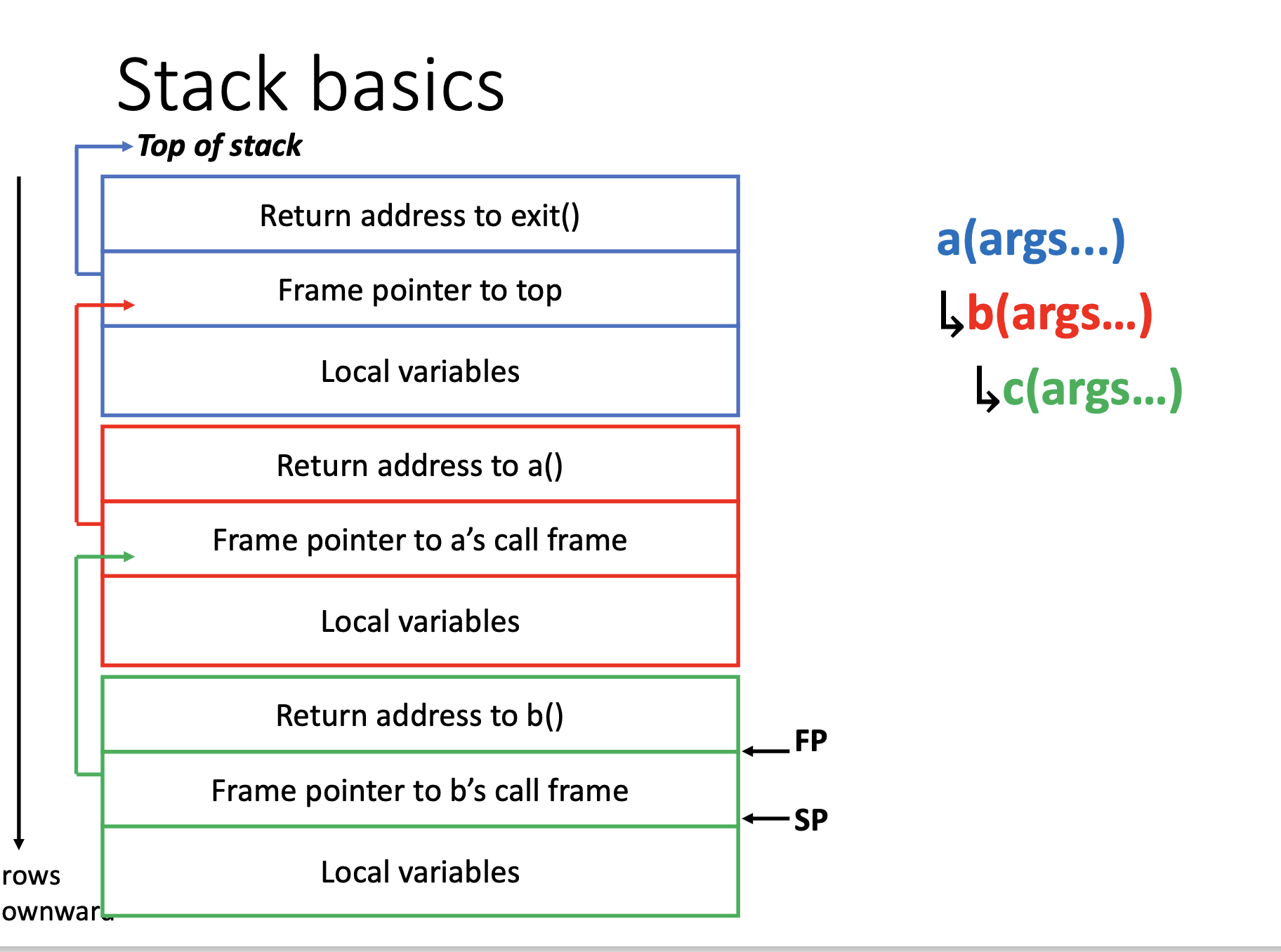 而在汇编中,如果要在函数中call另一个函数,就要手动创建其对应的栈空间,方法就是将sp,也就是stackpointer,指向stack最底下的指针减一定大小,也就做到了扩充栈空间。然后在调用前要存储当前函数的返回位置,然后调用结束后再取回来。